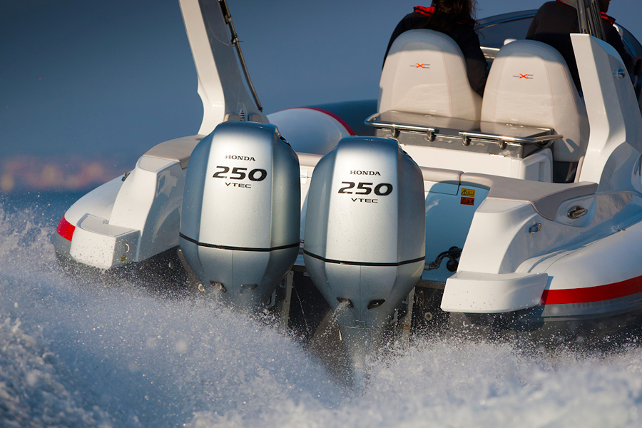 Jaudīgie V6 Honda BF250 dzinēji ar 24 vārstiem un elektronisko daudzpunktu degvielas iesmidzināšanas sistēmu. Atklājiet jaunu komforta līmeni jūras braucienam!