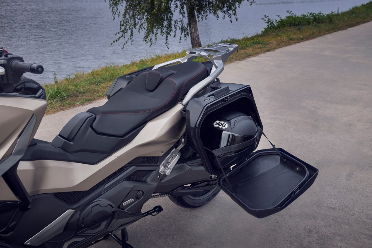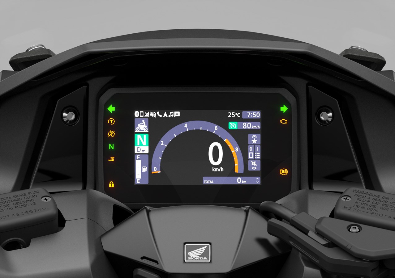 Forza 750, kas atrodas prestižā Forza klāsta augšgalā, ir izcils pilsētas motorollers, kas piedāvā aizraujošu braucienu un greznu komfortu. Divriteņu transports, kas pārsteidz visās jomās, 2025 gadā saņēmis dinamiska stila atsvaidzinājumu un specifikāciju uzlabojumus, ko nodrošina jauni dubultie LED priekšējie lukturi ar integrētiem DRL un pagriezienu indikatoriem, kā arī standarta kruīza kontrole un atjaunināts piecu collu TFT ekrāns ar Honda RoadSync savienojamība. Tāpat kā iepriekš, bez piepūles paātrinājumu nodrošina griezes moments ko saražo 745 kubikcentimetru divu cilindru dzinējs, kas aprīkots ar Throttle-By-Wire, trim noklusējuma braukšanas režīmiem un trīs līmeņu Honda izvēles griezes momenta (HSTC) kontroli, kas piedāvā arī tikko pilnveidoto RAIN režīmu. Cauruļveida tērauda rāmis, alumīnija aizmugurējās dakšas svira, Pro-Link aizmugurējā piekare un 17/15 collu priekšējie/aizmugurējie riteņi nodrošina drošu vadāmību ar spēcīgu bremzēšanu, ko nodrošina dubultā radiālā stiprinājuma četru virzuļu priekšējie suporti. Zem sēdekļa esošajā glabātuvē var ievietot visu seju aizsedzošu ķiveri. A2 kategorijas vadītājiem ir pieejama arī 35 kW versija. Trīs jaunas krāsas saglabā Forza 750 svaigumu un vēl vairāk uzlabo tās iekārojamību.