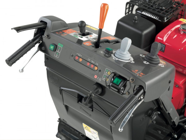 Ķēdes tiek darbinātas ar atsevišķu elektromotoru, un ātrums tiek nepārtraukti kontrolēts elektroniski. Tādējādi tiek nodrošināta viegla, līgana līkumu izbraukšana bez pūlēm, abām rokām paliekot uz vadības stieņa. Funkcija "griešanās uz vietas" ļauj apgriezt ierīci pilnīgi pretējā virzienā (skatīt attēlu pa labi). Šī vieglā manevrējamība ietaupa daudz saspringtu manevrēšanas kustību. Atvieglojums salīdzinot ar parastās ķēžu piedziņas ierīcēm ir acīmredzams: Virziena maiņa bez ķēdes bloķēšanās, bez piepūles un bez rupjas un saraustītas vadības.
