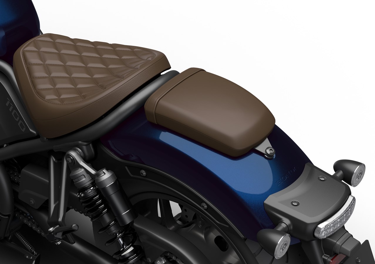 Honda lielā izmēra Rebel kruisers duets kļūst par trio, pievienojot jauno “ielas pielāgoto” CMX1100SE. Visiem trim ir labi pārbaudīts 1084 kubikcentimetru divu cilindru dzinējs, tagad ar pastiprinātu zemas un vidējas diapazona griezes momentu, kā arī lielāku jaudu. Dubultā sajūga transmisija (DCT) saņem zema ātruma darbības uzlabojumus, lai palielinātu lietojamību. Citi atjauninājumi ietver ergonomiskāku braukšanas pozīciju un jaunu piecu collu TFT ekrānu ar Honda RoadSync viedtālruņa savienojumu un USB-C ligzdu. Tehniskie aspekti ietver Throttle By Wire (TBW) kontroli, trīs noklusējuma braukšanas režīmus, kā arī divus LIETOTĀJA pielāgotos režīmus, trīs līmeņu Honda izvēlēto griezes momenta kontroli (HSTC) un kruīza kontroli.