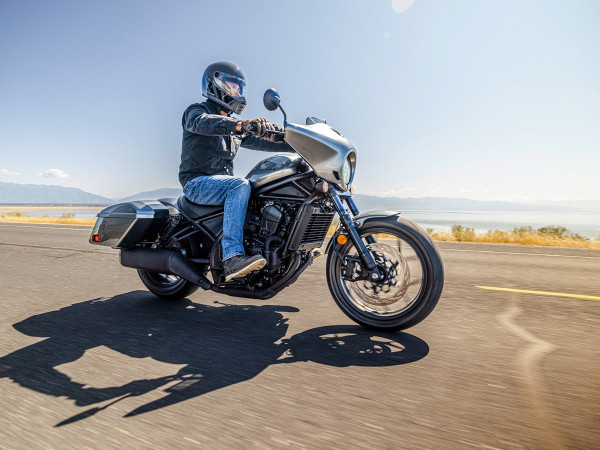 2025 gada jaunums — CMX1100T Rebel ir paredzēts braucējam, kurš vēlas visu Rebel 1100 piedāvāto potenciālu, kā arī spēju pārvarēt lielākas distances ar iebūvētu komfortu un noderīgu nestspēju. Uz priekšējās dakšas piestiprinātais aptecētājs, kas pieejams tikai modelim CMX1100T Rebel, ir gan stilīgs, gan ar īpaši pielāgotu, stingru vējstiklu nodrošina labu vēja novirzi. Pilnīgi jauni cietie aizmugurējie bagāžas nodalījumi ar eņģēm augšējiem vākiem, lieliski saplūst ar motocikla dizaina līnijām un piedāvā pilnu 35 litru kravnesību (labajā 16L, kreisajā 19L) - papildu 11 litrus salīdzinājumā ar neilona piederumu seglu somām Rebel 1100 modelim. Pieejams tikai DCT versijā.