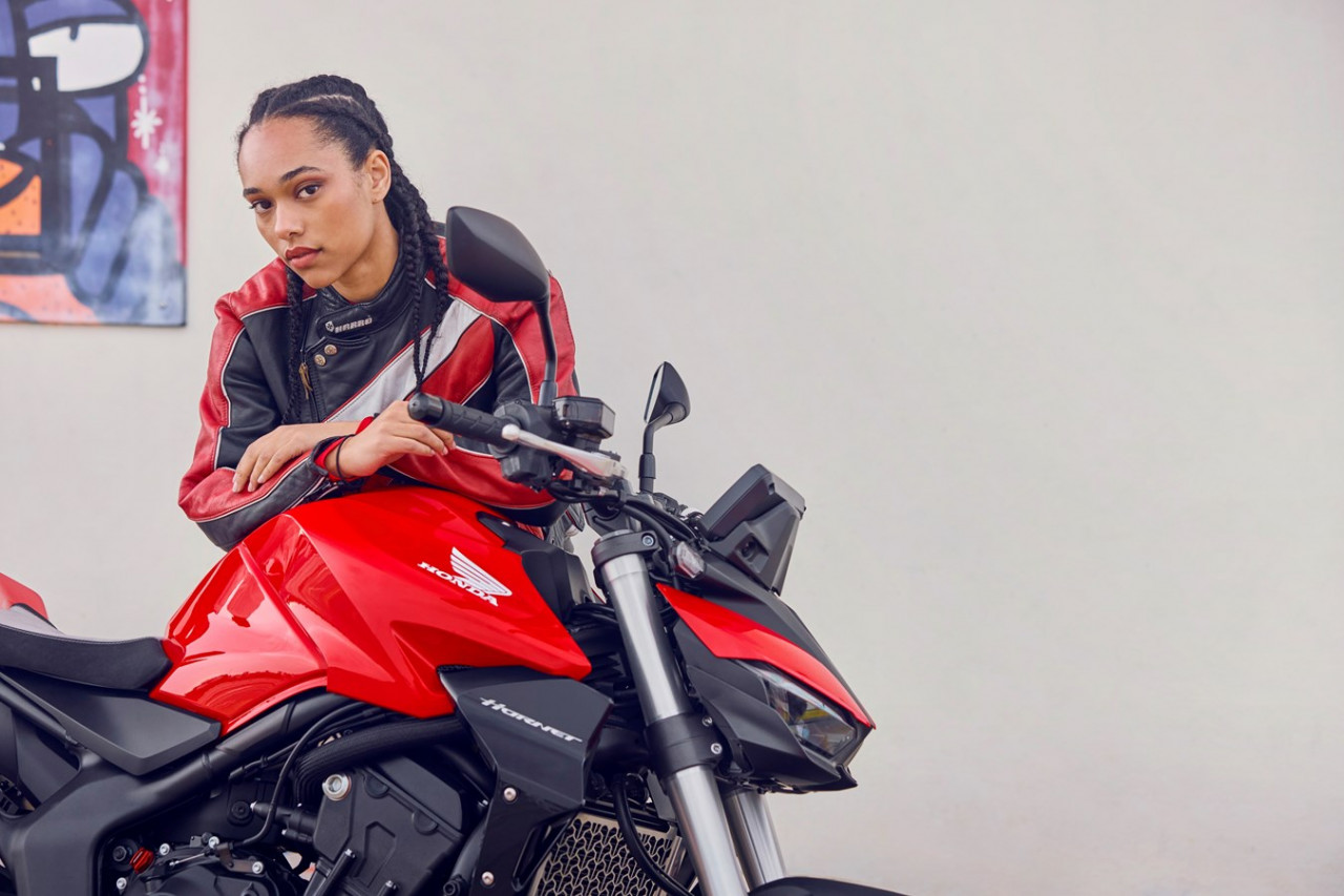- Tīrs un agresīvs streetfighter stils ir veidots ap Hornet preču zīmes šauru vidukli un platiem pleciem priekšējo daļu ar jaudīgiem diviem LED priekšējiem lukturiem.