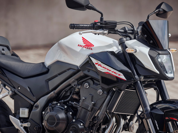 Un, lai gan CB500 HORNET dzinējs uztur 35 kW jaudu, kas nepieciešama A2 kategorijas vadītāja apliecības turētājiem, tas tagad sasniedz par 4 % vairāk jaudas un griezes momentu starp 3000-7000 apgr./min, pateicoties ievades, izplūdes un vārsta darbības laika uzlabojumiem. Jaunajam divkāršās izplūdes slāpētājam ir uzlabots izplūdes skaņas tonis, dzinējam tagad ir arī palīgsistēma slīdošam sajūgam.