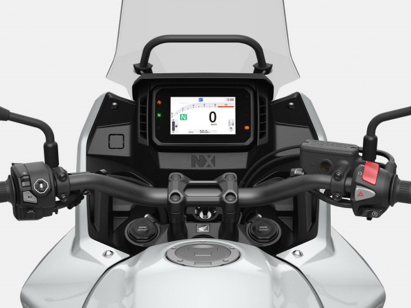 2026 gada Honda A2 standartam atbilstošais mini piedzīvojumu motocikls atkal dodas uz priekšu. Honda E-Clutch tehnoloģija nonāk NX500 modelī, nodrošinot lielāku ikdienas daudzpusību un komfortu. A2 standartam atbilstoša jauda un griezes moments 471 cm3 dzinējam paliek nemainīgi — 35 kW un 43 Nm —, savukārt Honda Selectable Torque Control sistēma sniedz pārliecību visos laikapstākļos. Plašajā aprīkojumā ietilpst 41 mm Showa SFF-BP USD dakša, dubultie diski priekšā, ko darbina divu virzuļu suporti. Jaudīgs LED priekšējais lukturis paver ceļu priekšā naktī, savukārt 5 collu TFT ekrāns piedāvā Honda RoadSync viedtālruņa savienojamību, ko vadām ar apgaismotu 4 virzienu pārslēgšanas slēdzi. 2026. gada modeļa atjauninājumus papildina jaunas krāsu opcijas.