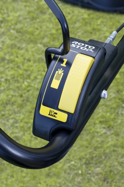 Pļaujmašīna aprīkota ar drošības bremžu sistēmu Roto-Stop.