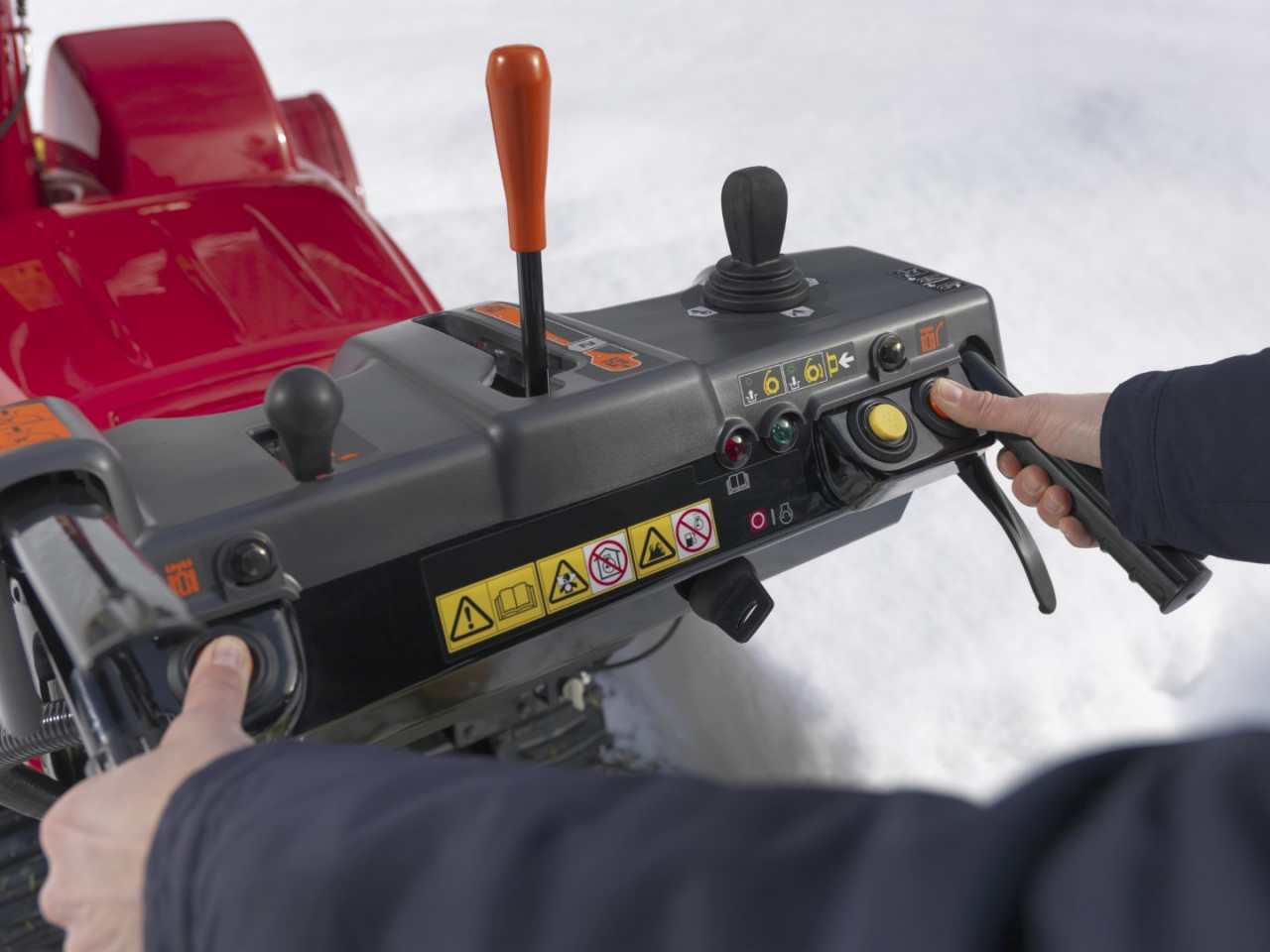 Ķēdes tiek darbinātas ar atsevišķu elektromotoru, un ātrums tiek nepārtraukti kontrolēts elektroniski. Tādējādi tiek nodrošināta viegla, līgana līkumu izbraukšana bez pūlēm, abām rokām paliekot uz vadības stieņa. Funkcija "griešanās uz vietas" ļauj apgriezt ierīci pilnīgi pretējā virzienā (skatīt attēlu pa labi). Šī vieglā manevrējamība ietaupa daudz saspringtu manevrēšanas kustību. Atvieglojums salīdzinot ar parastās ķēžu piedziņas ierīcēm ir acīmredzams: Virziena maiņa bez ķēdes bloķēšanās, bez piepūles un bez rupjas un saraustītas vadības.