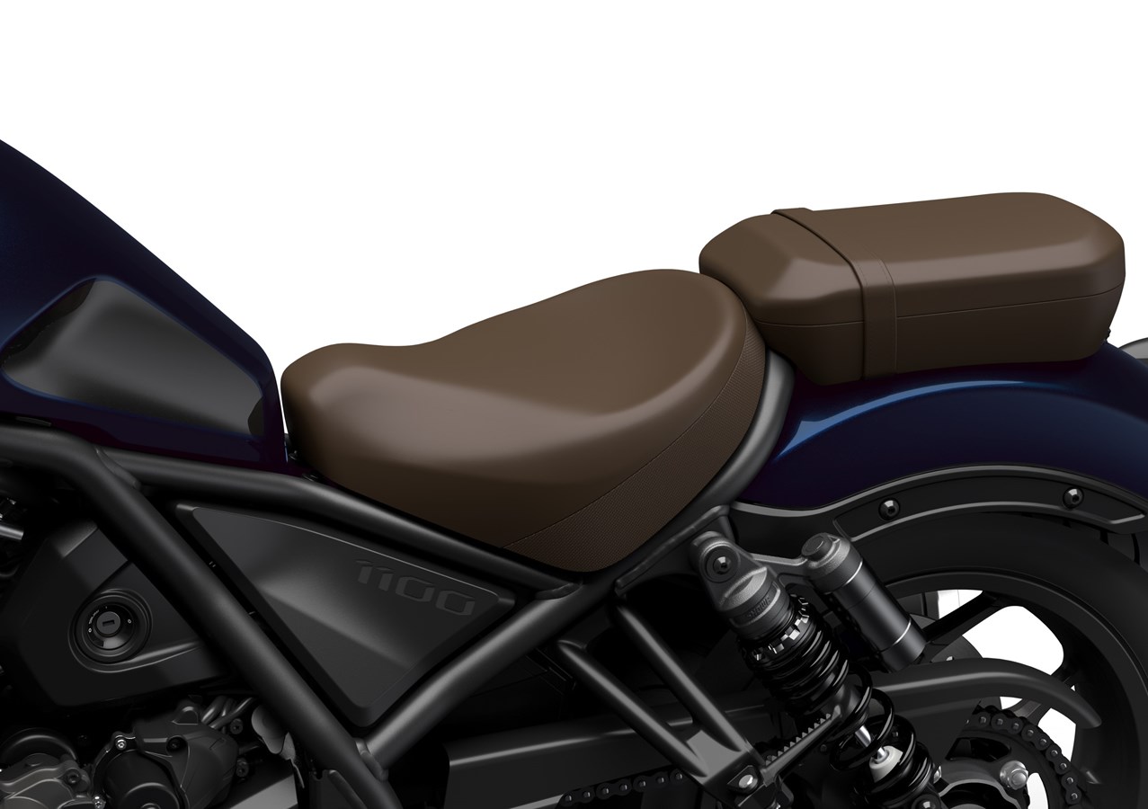 Honda lielā izmēra Rebel kruisers duets kļūst par trio, pievienojot jauno “ielas pielāgoto” CMX1100SE. Visiem trim ir labi pārbaudīts 1084 kubikcentimetru divu cilindru dzinējs, tagad ar pastiprinātu zemas un vidējas diapazona griezes momentu, kā arī lielāku jaudu. Dubultā sajūga transmisija (DCT) saņem zema ātruma darbības uzlabojumus, lai palielinātu lietojamību. Citi atjauninājumi ietver ergonomiskāku braukšanas pozīciju un jaunu piecu collu TFT ekrānu ar Honda RoadSync viedtālruņa savienojumu un USB-C ligzdu. Tehniskie aspekti ietver Throttle By Wire (TBW) kontroli, trīs noklusējuma braukšanas režīmus, kā arī divus LIETOTĀJA pielāgotos režīmus, trīs līmeņu Honda izvēlēto griezes momenta kontroli (HSTC) un kruīza kontroli.