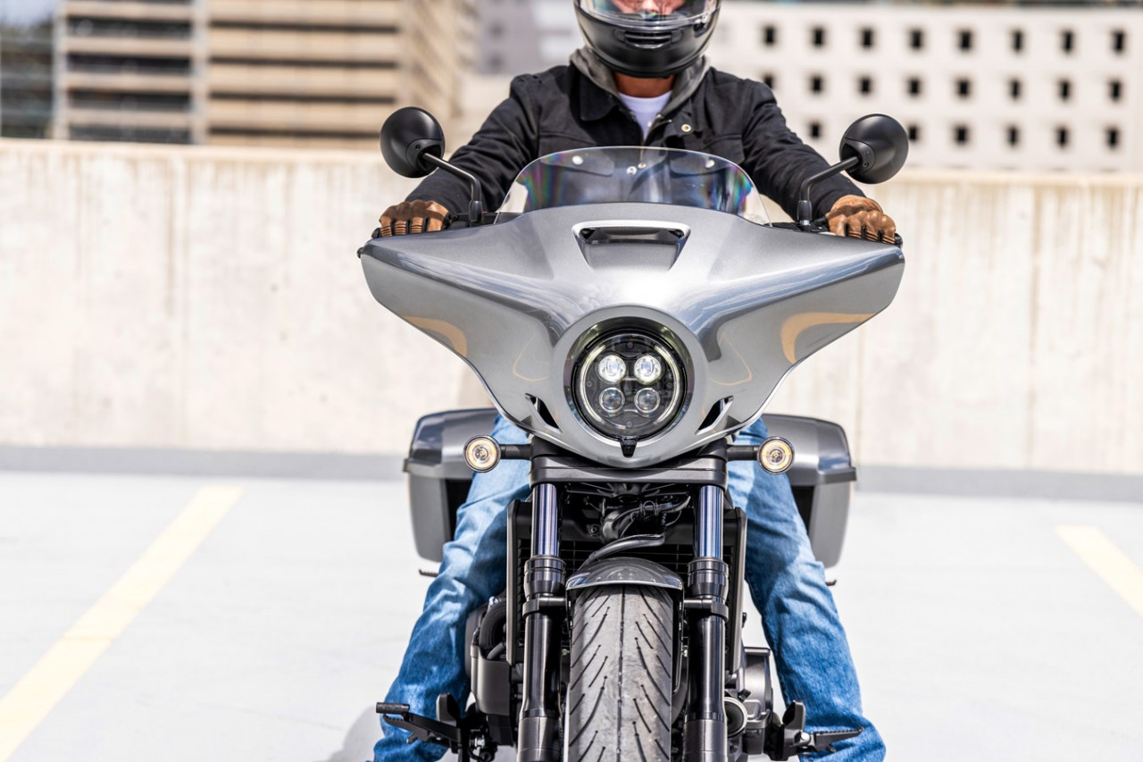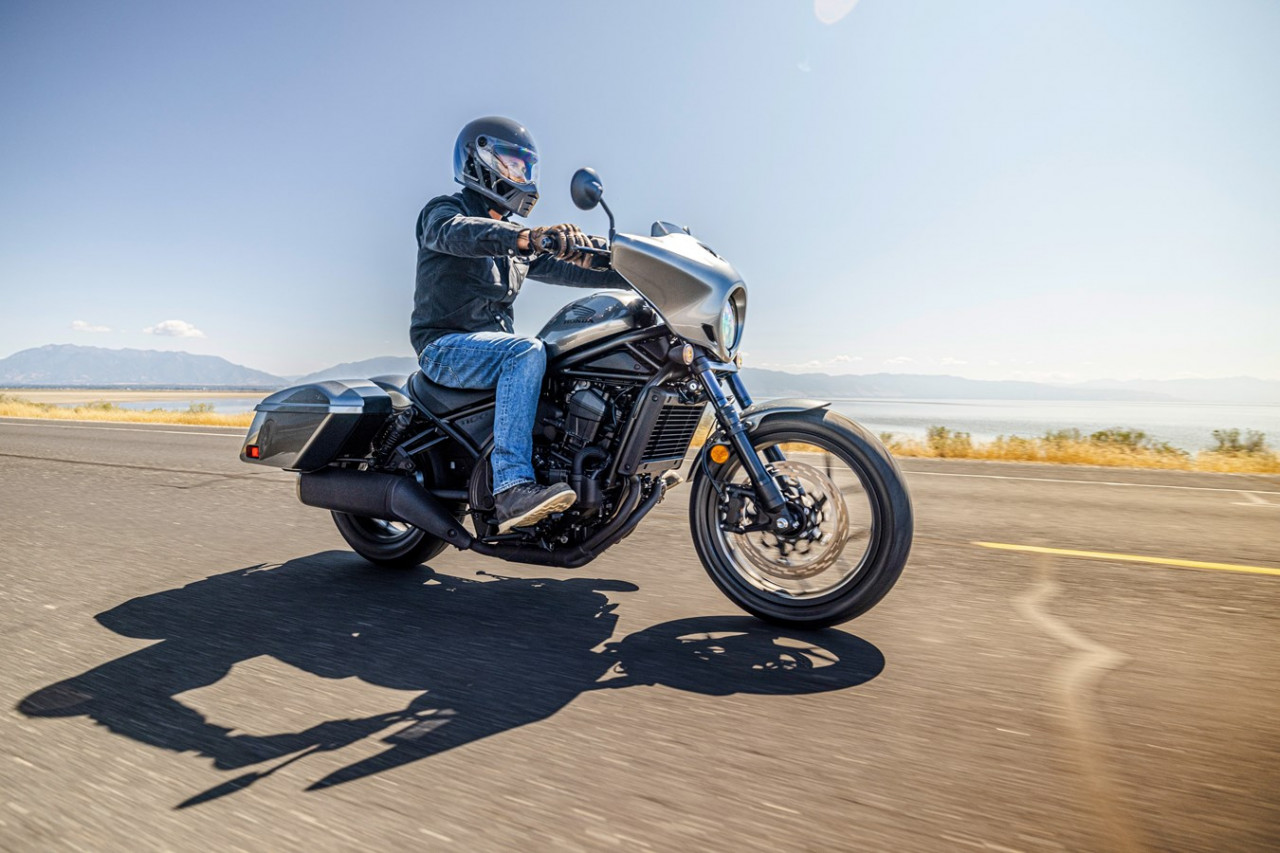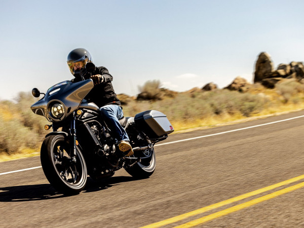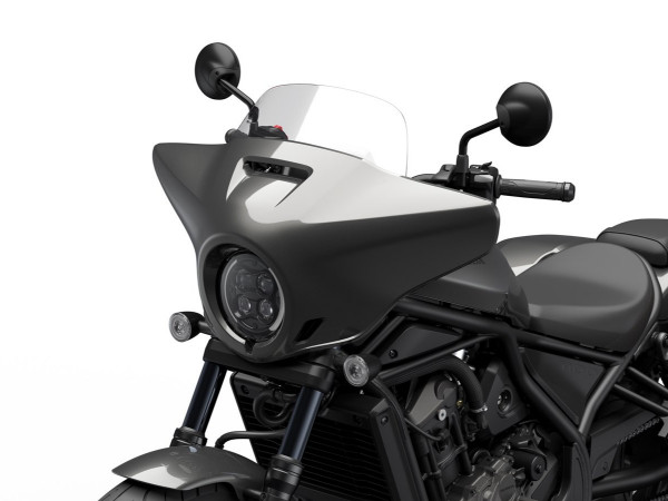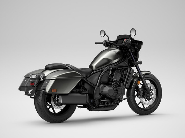 2025 gada jaunums — CMX1100T Rebel ir paredzēts braucējam, kurš vēlas visu Rebel 1100 piedāvāto potenciālu, kā arī spēju pārvarēt lielākas distances ar iebūvētu komfortu un noderīgu nestspēju. Uz priekšējās dakšas piestiprinātais aptecētājs, kas pieejams tikai modelim CMX1100T Rebel, ir gan stilīgs, gan ar īpaši pielāgotu, stingru vējstiklu nodrošina labu vēja novirzi. Pilnīgi jauni cietie aizmugurējie bagāžas nodalījumi ar eņģēm augšējiem vākiem, lieliski saplūst ar motocikla dizaina līnijām un piedāvā pilnu 35 litru kravnesību (labajā 16L, kreisajā 19L) - papildu 11 litrus salīdzinājumā ar neilona piederumu seglu somām Rebel 1100 modelim. Pieejams tikai DCT versijā.