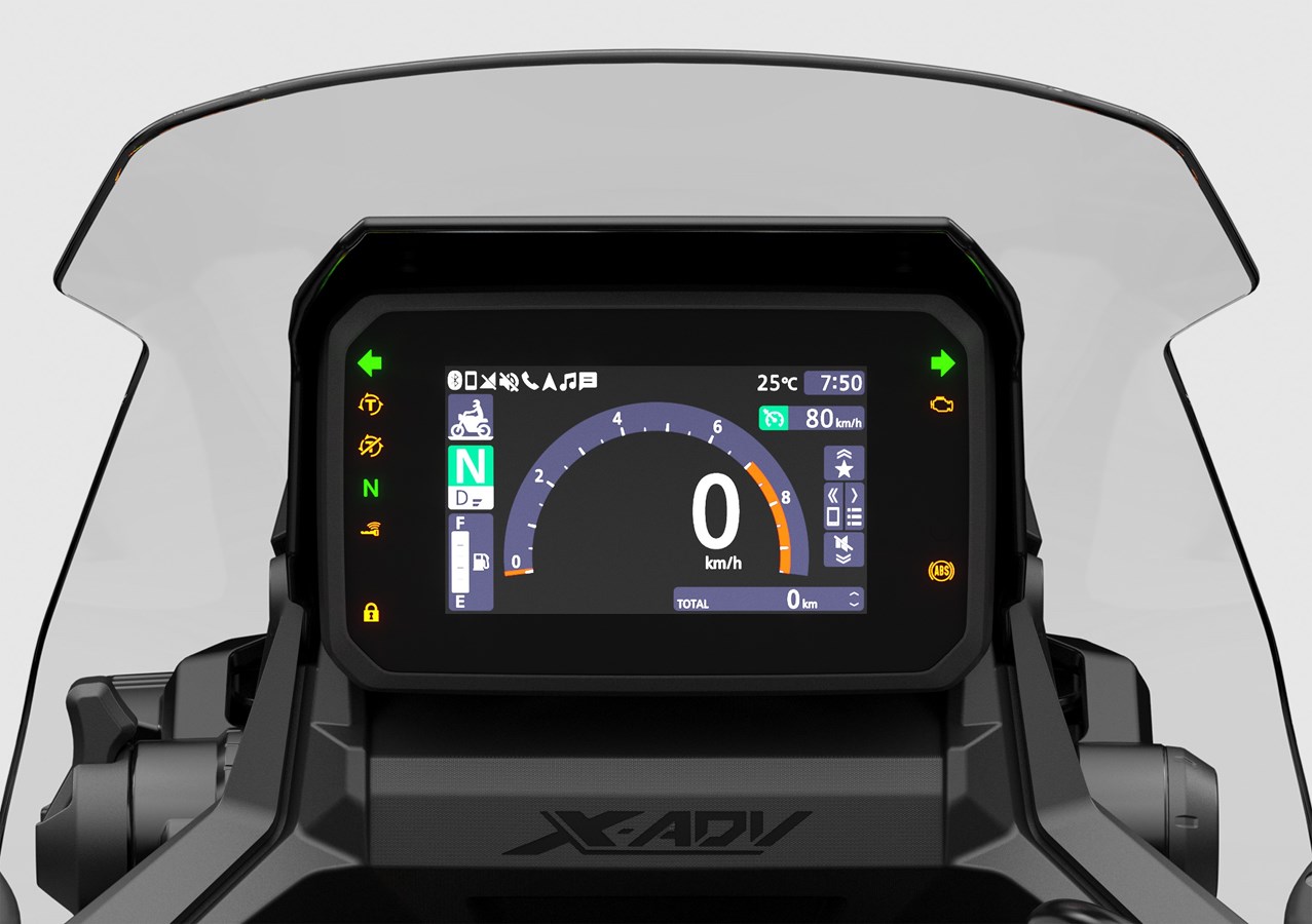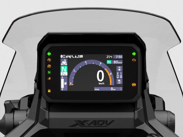 Revolucionārais X-ADV unikāli apvieno piedzīvojumu motocikla iespējas un liela motorollera lietderību un praktiskumu. Atjaunināts 2025 gadā, tas saņem stila atsvaidzinājumu ar diviem LED priekšējiem lukturiem, kuriem ir jauni dienas gaitas lukturi ar integrētiem pagriezienu indikatoriem, kā arī jauna standarta kruīza kontrole un dubultā sajūga transmisijas (DCT) atjuninājums vienmērīgākai zema ātruma vadāmībai. Atspoguļojot Honda ilgtermiņa vides mērķus un līdztekus citu pārstrādātu materiālu izmantošanai virsbūvē, biomasas plastmasa DurabioTM tiek izmantota dažām apšuvuma daļām. Arī izgatavotais no DurabioTM vējstikls tagad ir viegli regulējams ar vienu kreiso roku trīs pozīcijās. X-ADV bagātīgajā specifikācijā ir iekļauta Throttle By Wire (TBW) vadība, četri noklusējuma braukšanas režīmi ar jaudas, dzinēja bremzēšanas un Honda izvēlētās griezes momenta kontroles (HSTC) iestatījumu kombinācijām, kas uzlabotas 2025 gada modelim. Sēdekļa pamatnei ir papildu 10% uretāna putas, kas nodrošina lielāku komfortu, jauna forma vieglākai zemes sasniedzamībai un vienmērīgāka atvēršana un aizvēršana. 22 L sēdekļa bagāžas nodalījumā ir USB-C ligzda, un cimdu nodalījums nodrošina papildu ērtības. Pārskatītais piecu collu TFT displejs nodrošina viedtālruņa savienojumu, izmantojot Honda RoadSync, izmantojot intuitīvu un izgaismotu četru virzienu pārslēgšanas slēdzi kreisajā stūrē. Trīs jaunas krāsas opcijas ir pievienotas pilnīgi jaunai Special Edition krāsu shēmai, kas garantē, ka X-ADV turpinās pievērst uzmanību visā Eiropā.